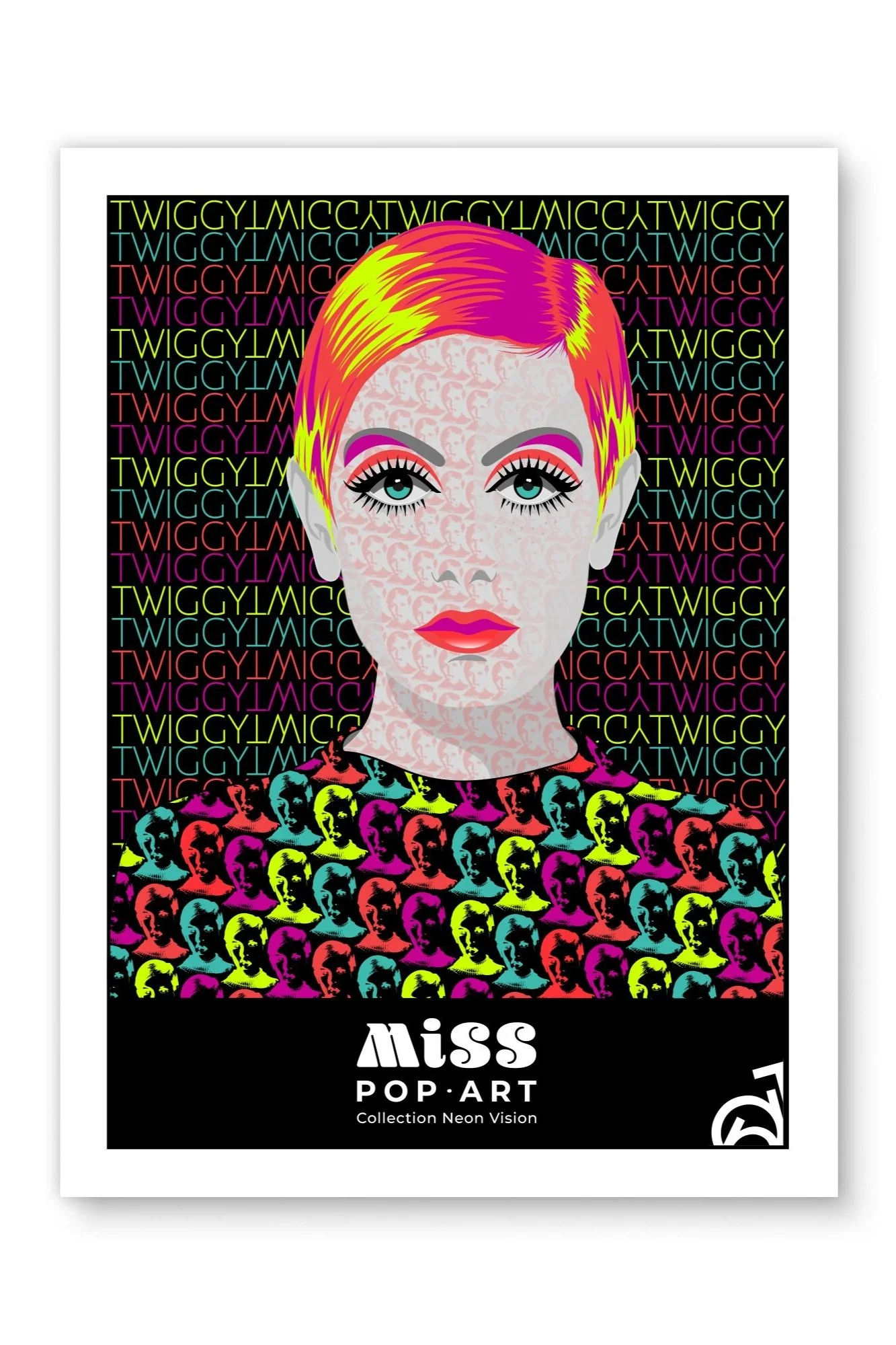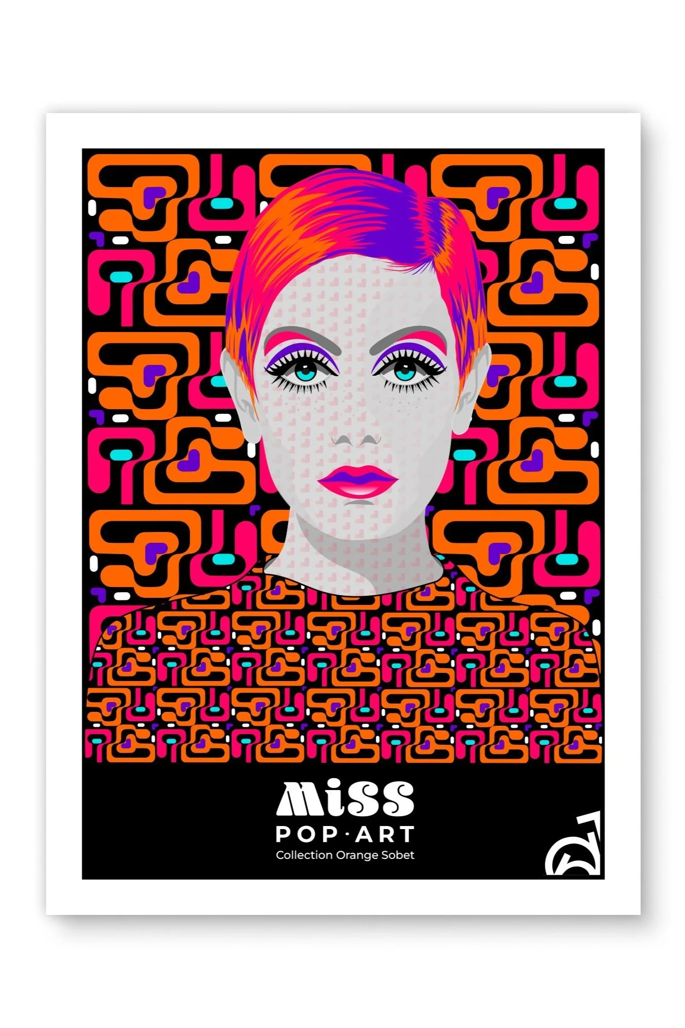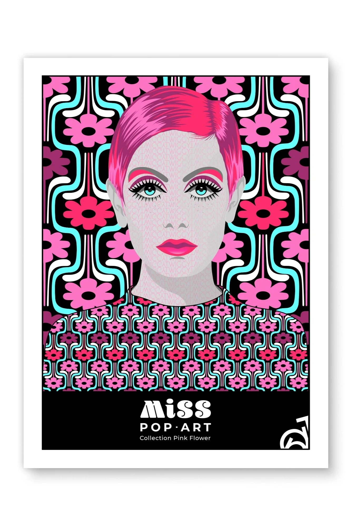 J’ai créé cette collection MISS POP-ART pour rendre hommage aux années 60-70. Les motifs, les couleurs et la création d’illustrations, motifs et tapisserie. En vedette Twiggy une mannequine icône de la mode qui a marqué cette période mémorable du design de la mode.