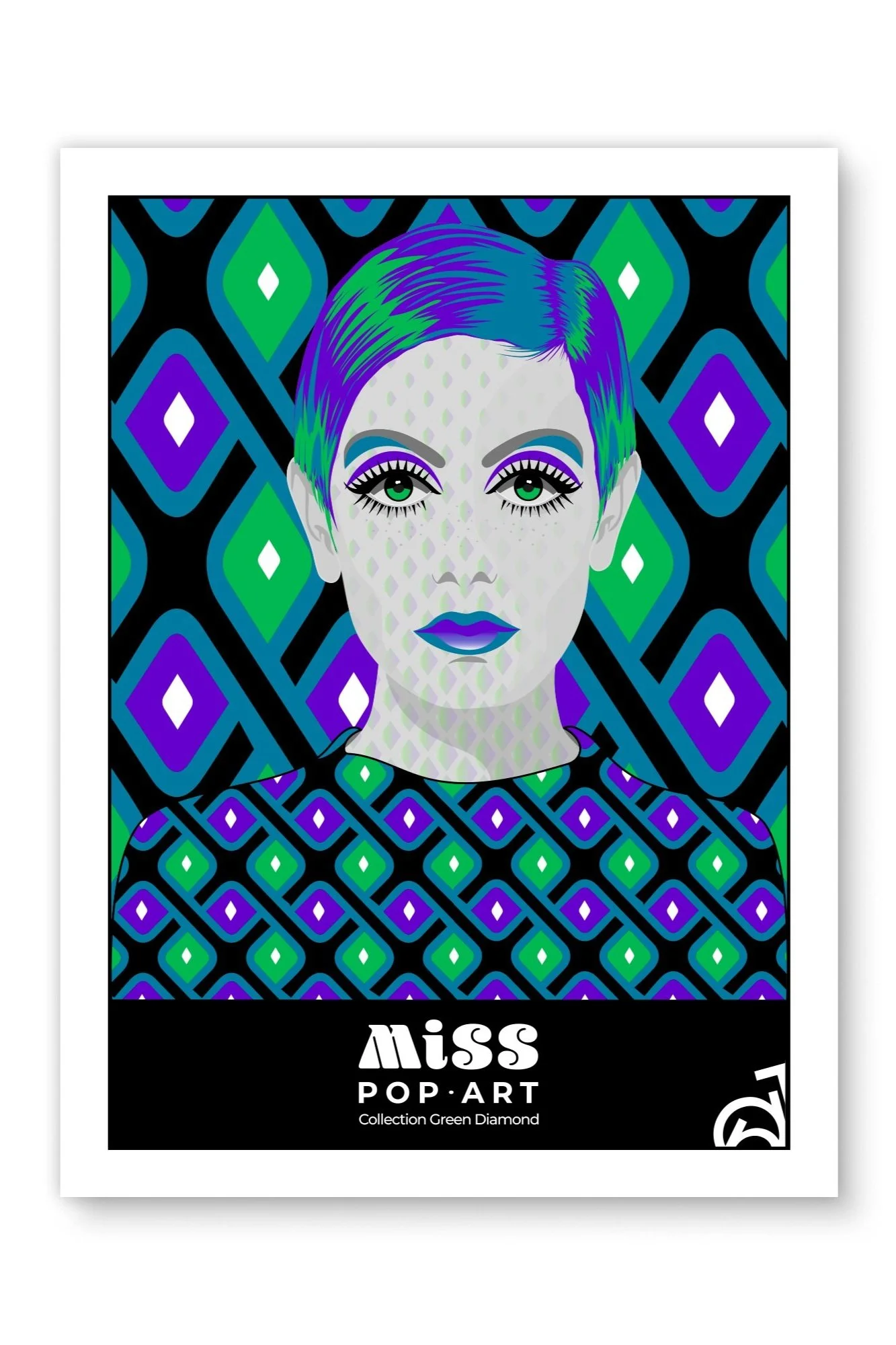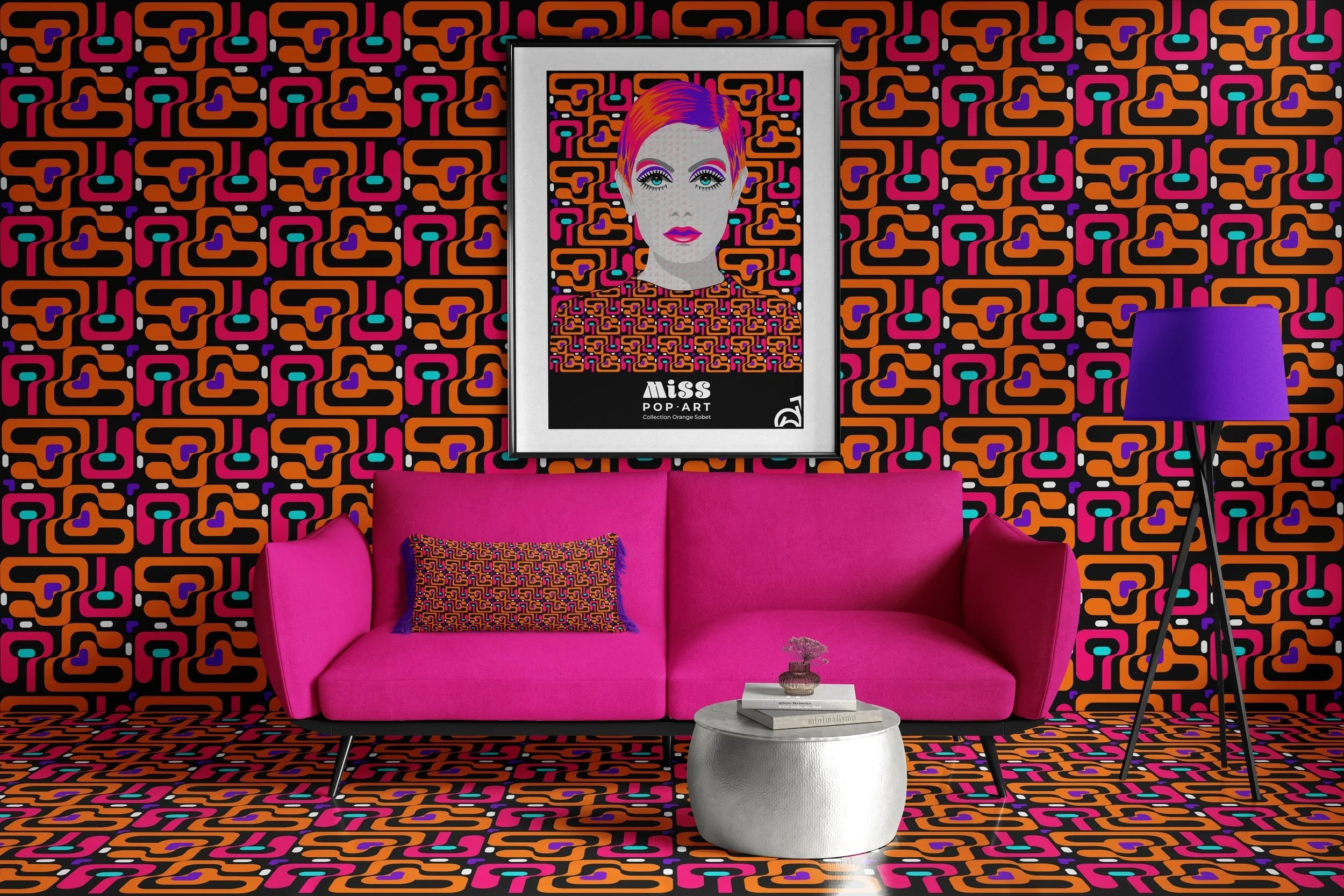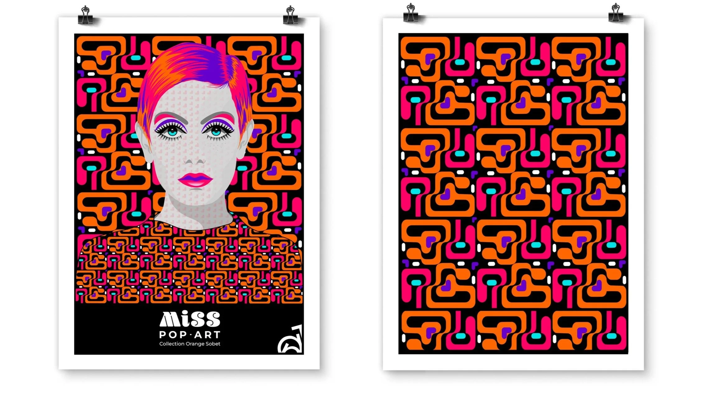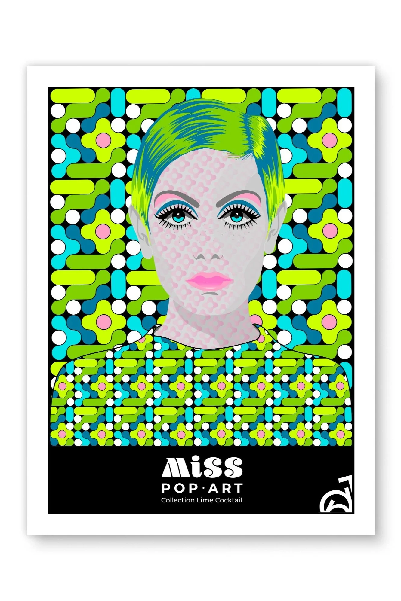 J’ai créé cette collection MISS POP-ART pour rendre hommage aux années 60-70. Les motifs, les couleurs et la création d’illustrations, motifs et tapisserie. En vedette Twiggy une mannequine icône de la mode qui a marqué cette période mémorable du design de la mode.
